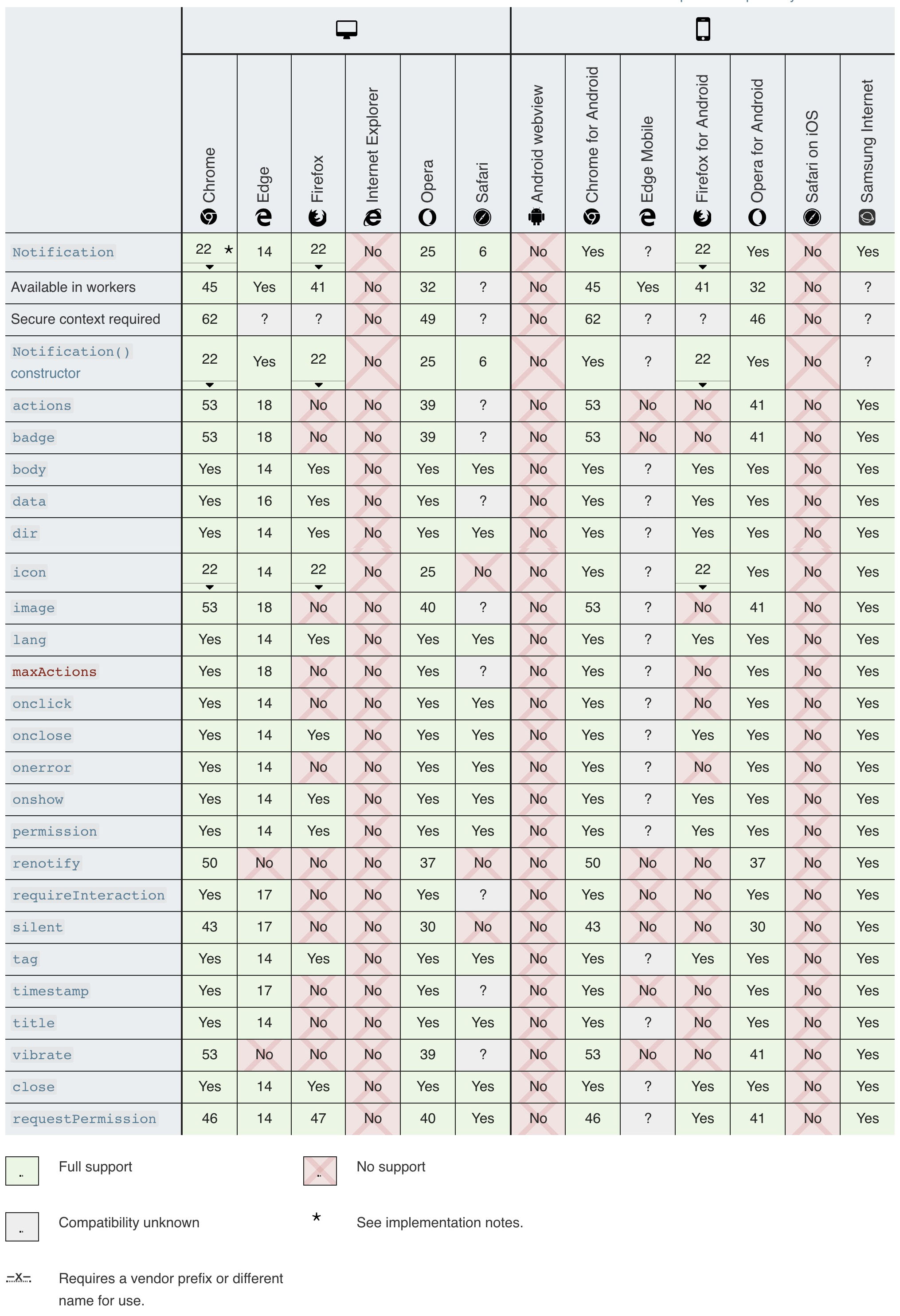 Notifications API 的 Notification 界面用于配置和显示用户的桌面通知。 这些通知的外观和特定功能因平台而异,但通常它们提供了一种向用户异步提供信息的方法。