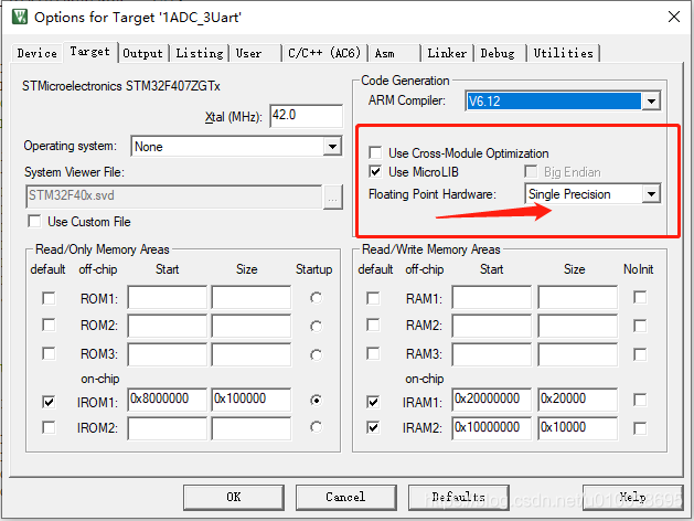 DSP库对浮点计算做了优化和增强,一般来说在具有FPU单元的单片机上运行效果更好,STM32F4 是M4内核,支持FPU,但默认是关闭该功能的,需要手动开启,开启方法很简单,开启Single Precison,硬件浮点计算功能即可。