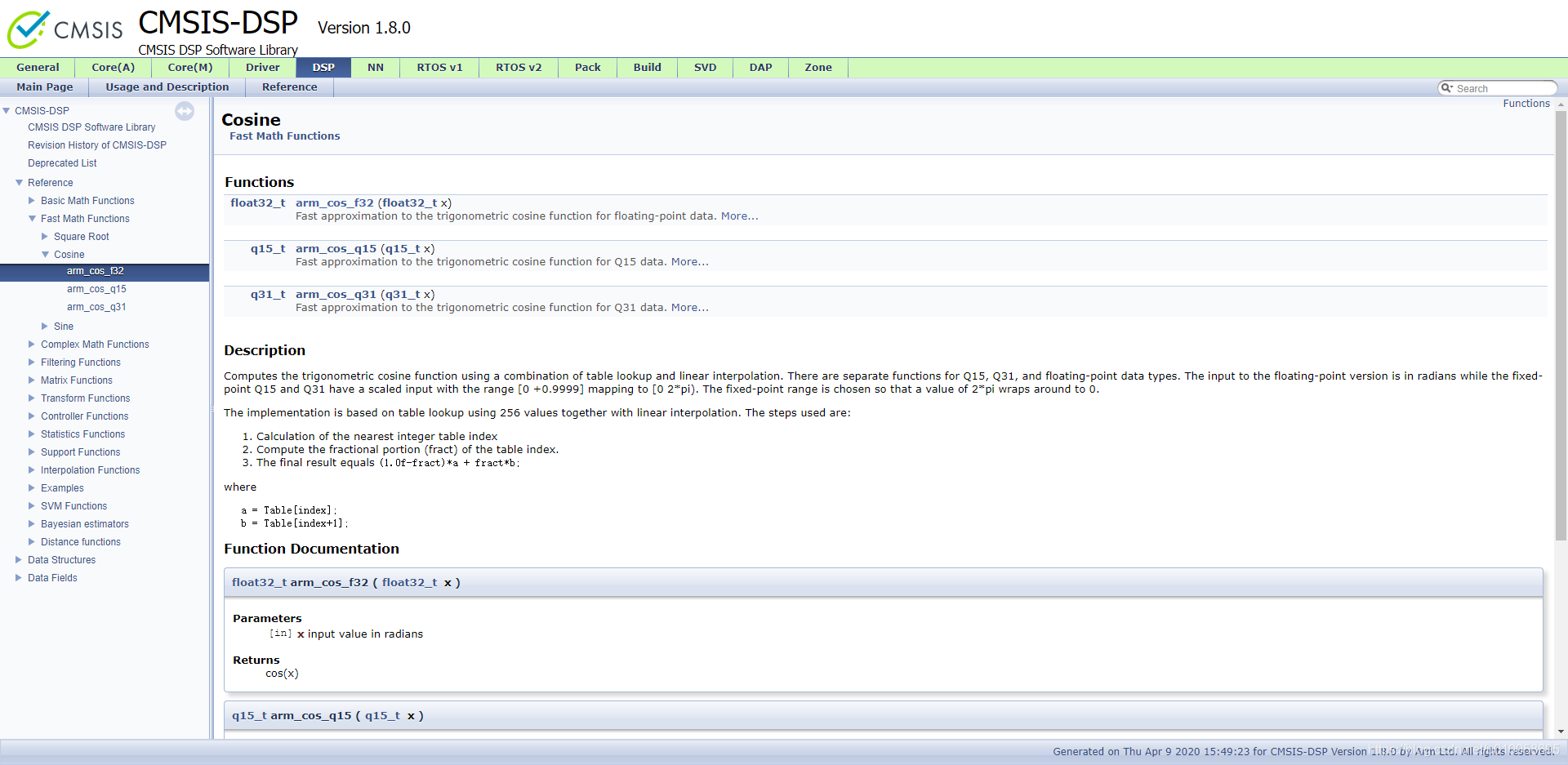 在线参考手册:https://www.keil.com/pack/doc/CMSIS/DSP/html/group__cos.html#gace15287f9c64b9b4084d1c797d4c49d8