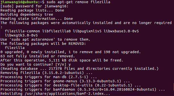 sudo apt-get remove filezilla