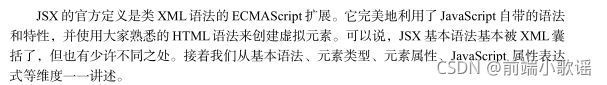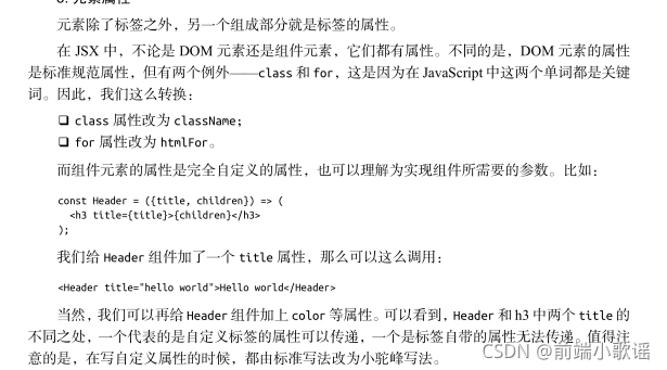 、我们讲到两种不同的元素:DOM元素和组件元素 在JSX里面有对应