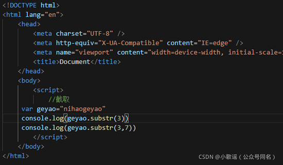 <script>//截取var geyao="nihaogeyao"console.log(geyao.substr(3))console.log(geyao.substr(3,7))