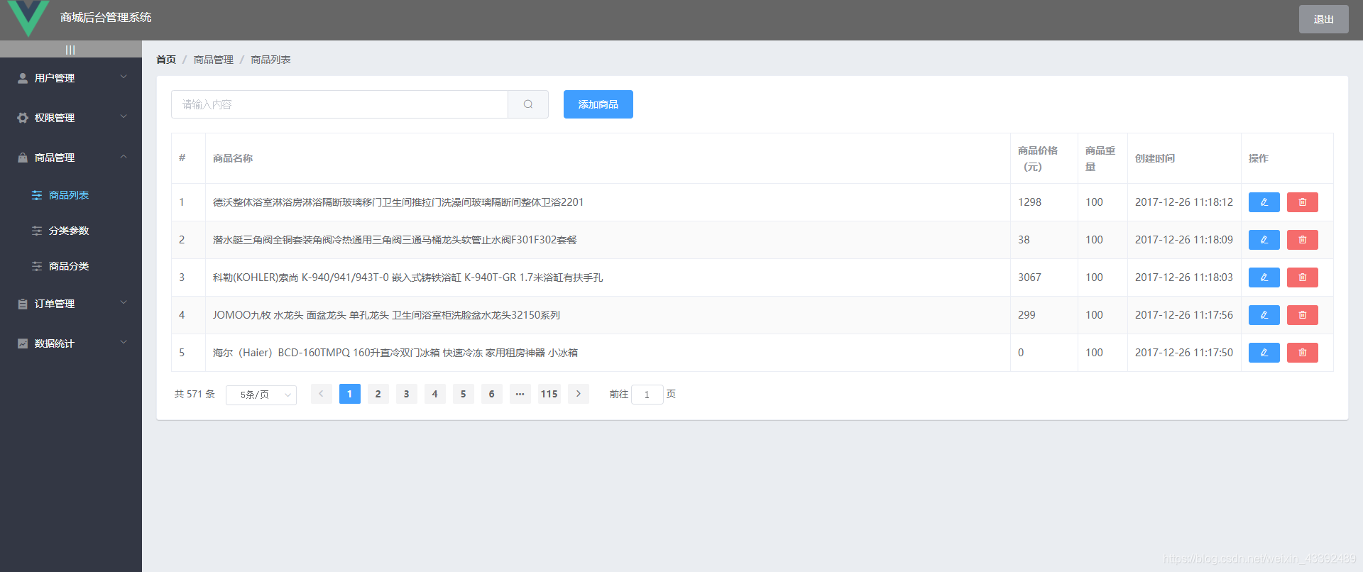 项目演示就是一个标准的一个后台管理 包括用户管理 权限管理 商品管理页面什么的 相对来说还是非常的简单易懂