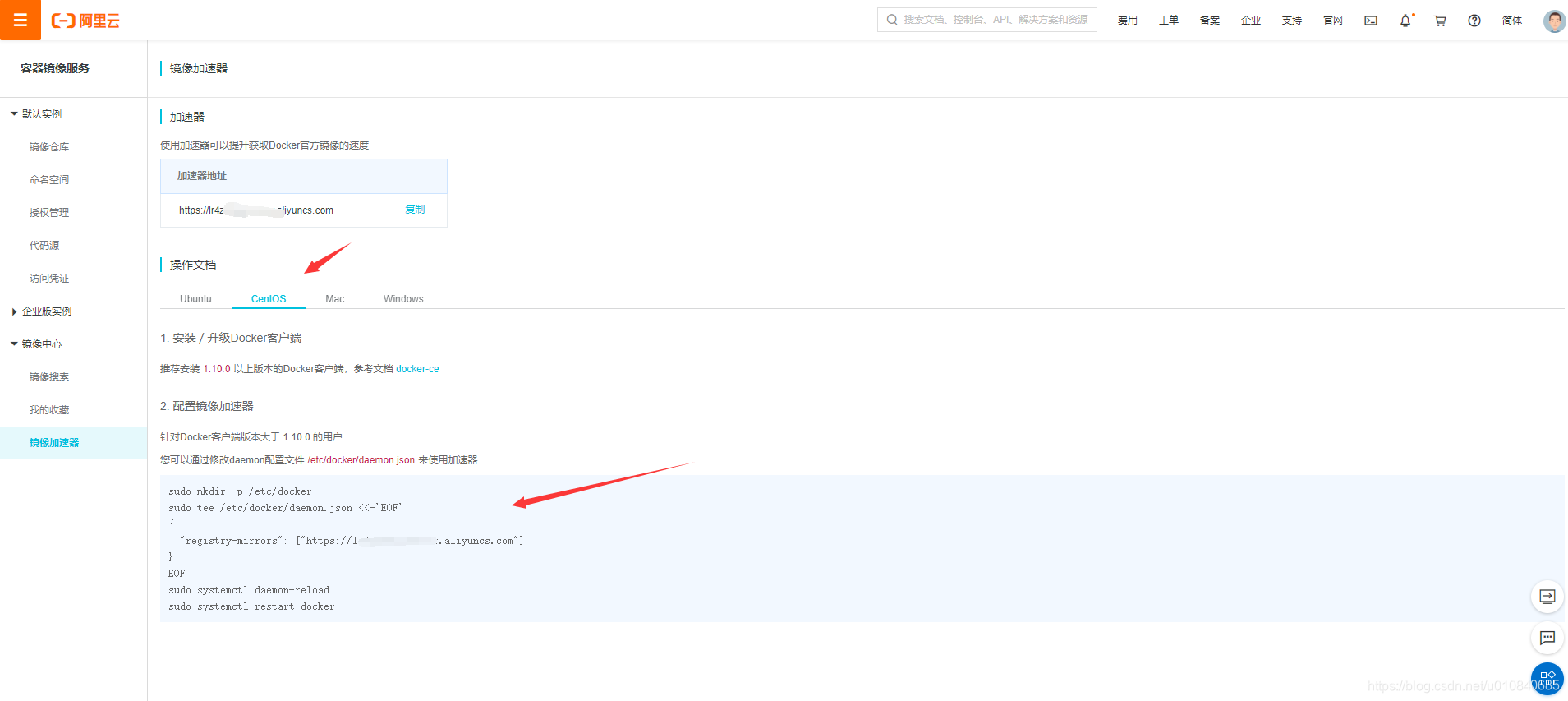(4)由于国内系统拉取国外镜像缓慢所以我们在开始安装Oracle之前,需要配置一下阿里云加速镜像服务