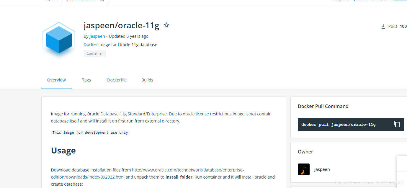 docker pull jaspeen/oracle-11g