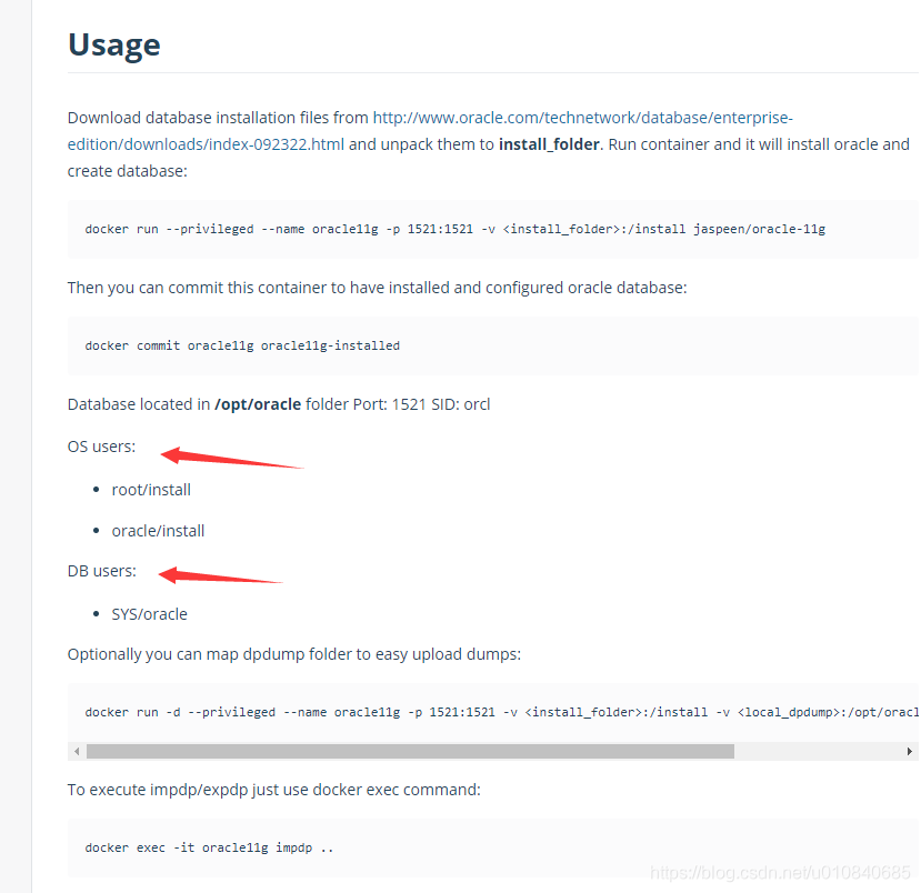 由于版权问题,此容器只配置了Oracle安装的配置和其他依赖包,Oracle的安装包还是需要我们自己准备的