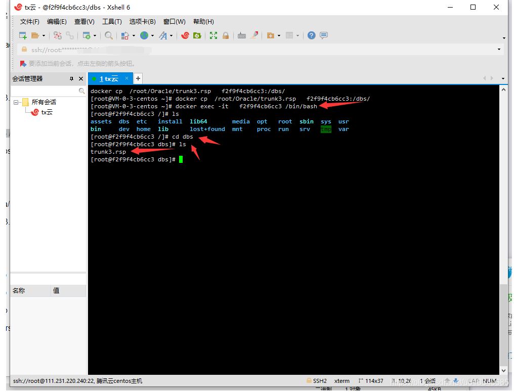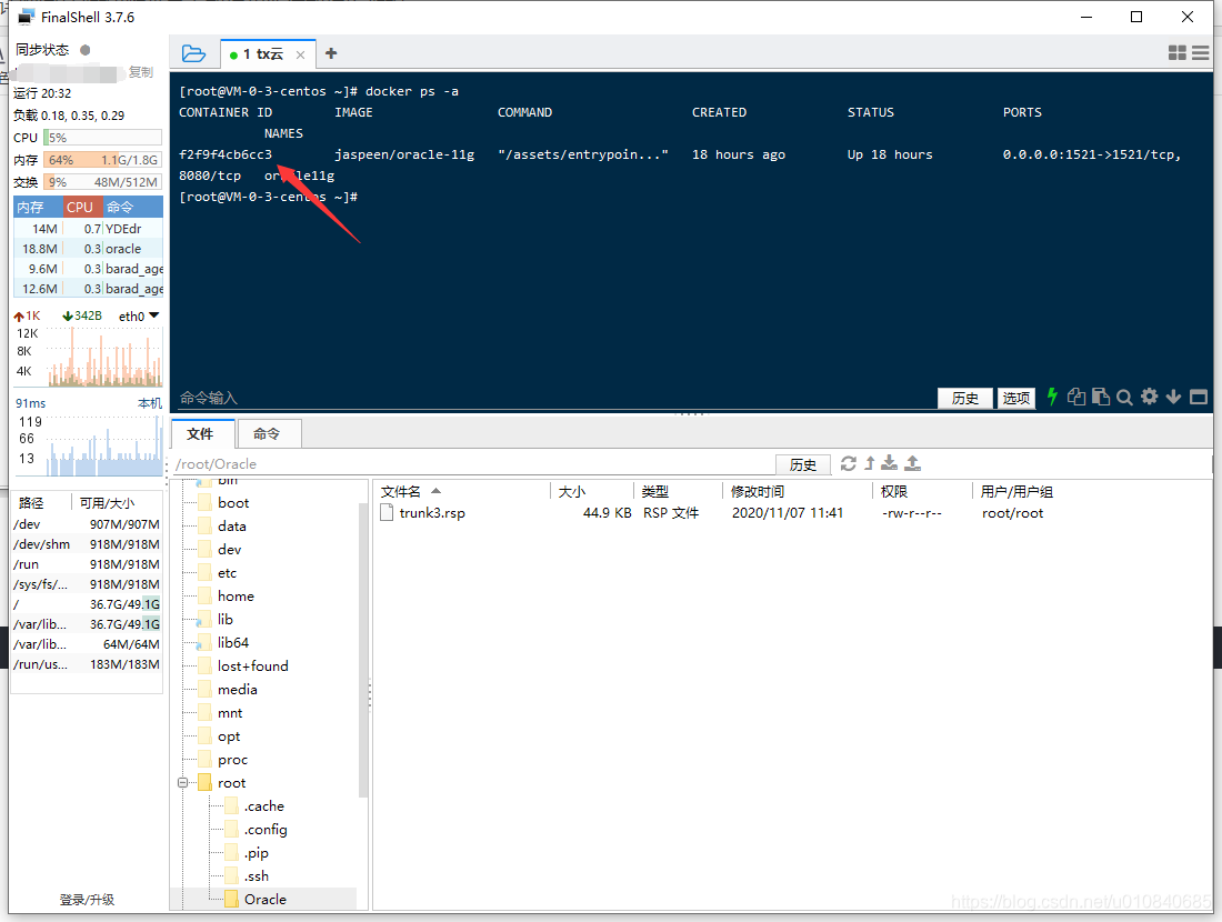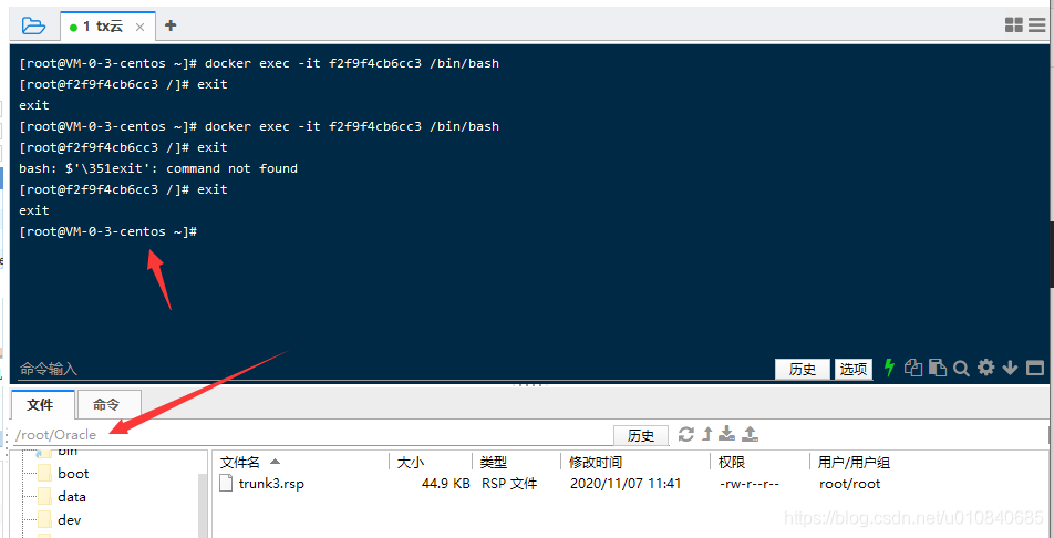 退出容器返回上级 这里可以按到我上传的文件地址为 /root/Oracle