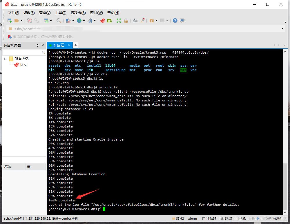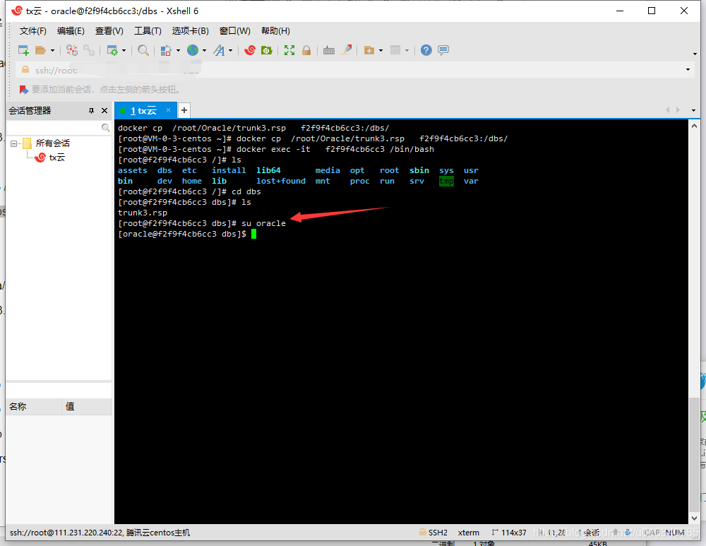 复制完成后进入容器切换至oracle帐号执行下列命令