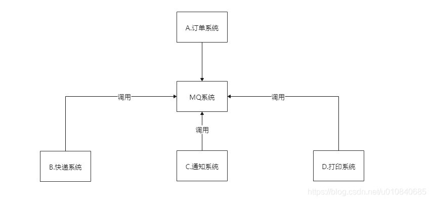我们A系统秩序通知MQ系统 后面的B,C,D要信息的话直接找MQ系统调用就行
