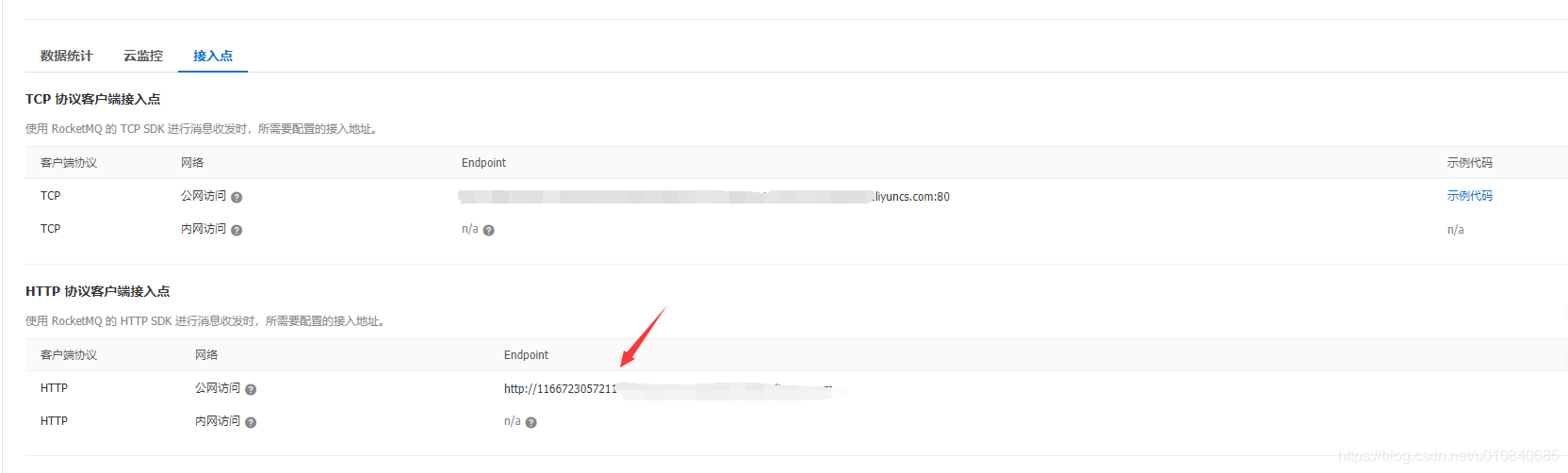 其中的endpoint可以在阿里云中接入点中查看