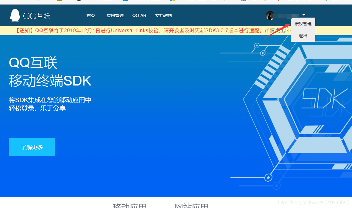 进入页面首先登录,登录过后在头像下拉菜单找到授权管理