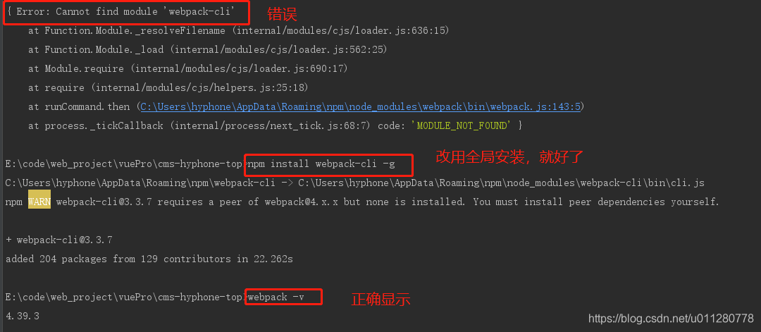 npm install webpack-cli -g 全局安装解决
