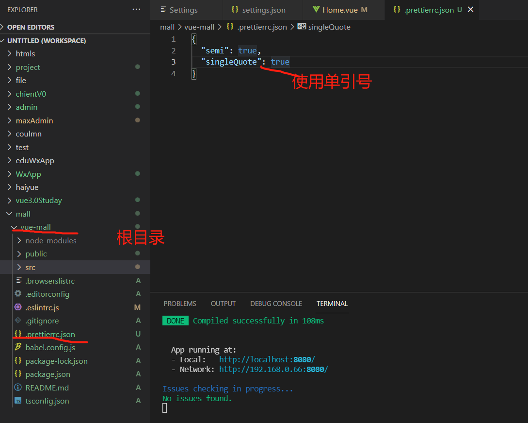 这个问题说明必须使用单引号,在vue的项目开发中,如果我们在通过vue-cli脚手架构建项目的时候使用了Eslint严格模式,那么对于字符串类型的数据String必须要使用单引号,不能使用双引号,否则会报异常。所以,当我们把双引号改为单引号就可以解决这样的问题了。