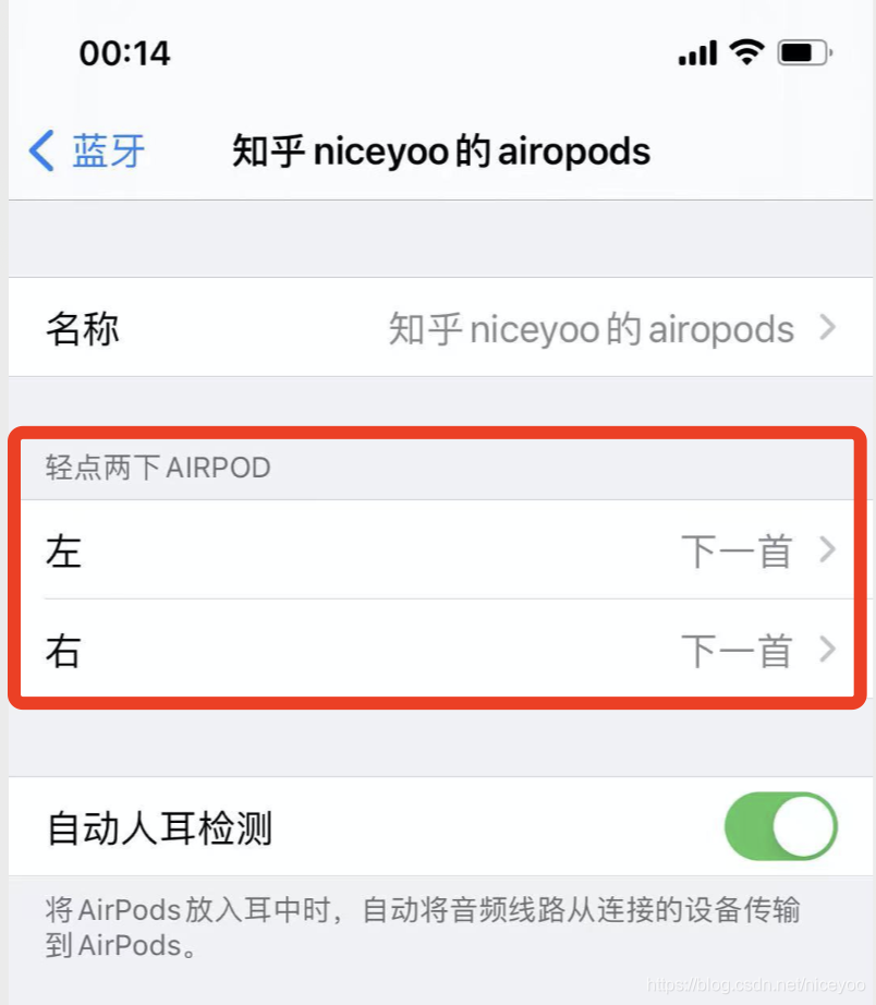 在苹果手机中是非常好操作的,可以直接通过蓝牙设备详情进行修改,如下图所示: