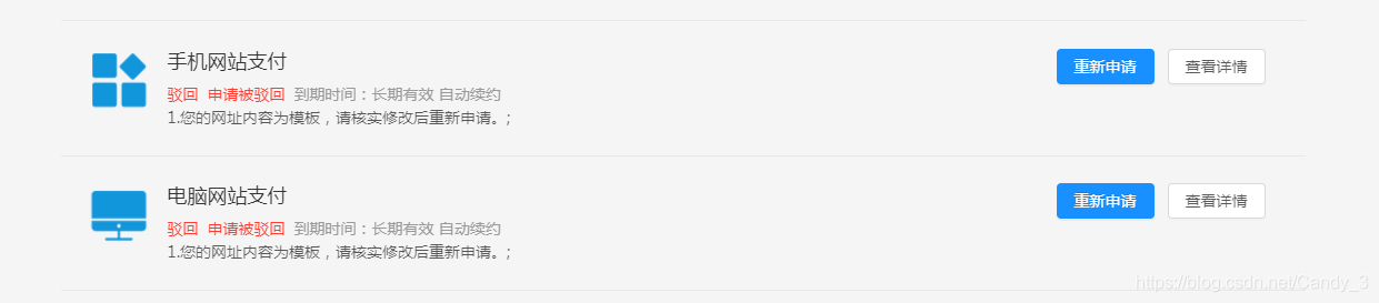 重新申请,修改网址之后就成功了: