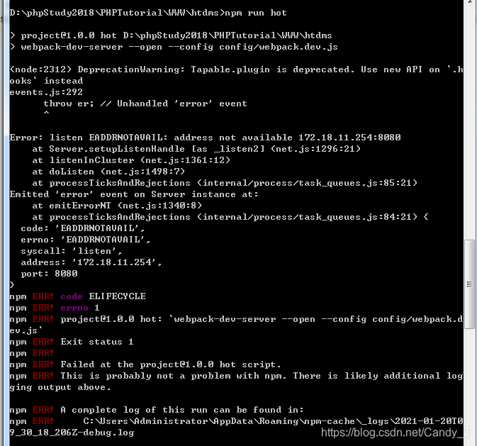 npm run hot运行 报错(node:5372) DeprecationWarning: Tapable.plugin is deprecated. Use new API on `.h ooks` instead