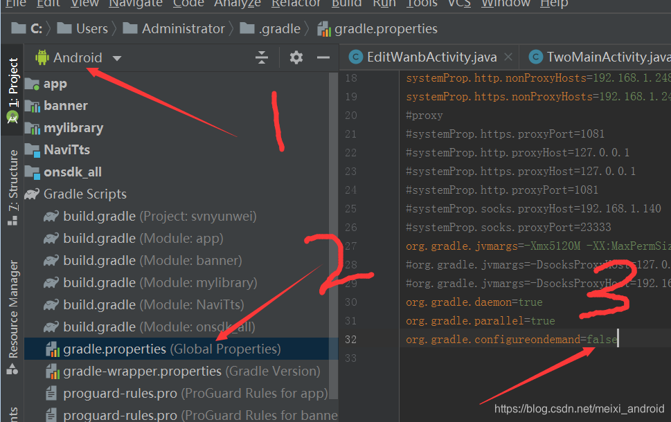 3、org.gradle.configureondemand=false——————默认是true。改完false即可