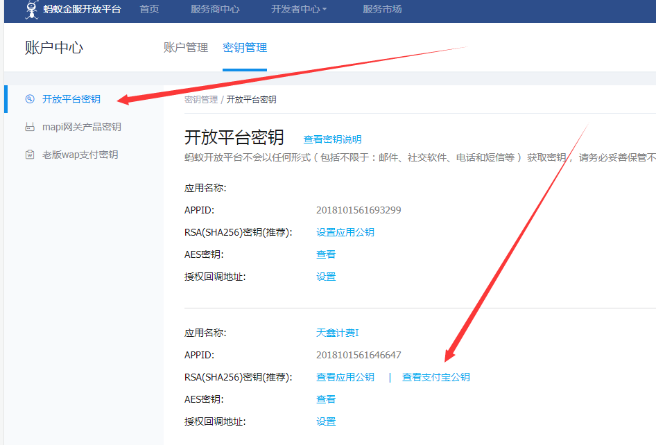 注:一定要使用 开放平台密钥里面的支付宝公钥