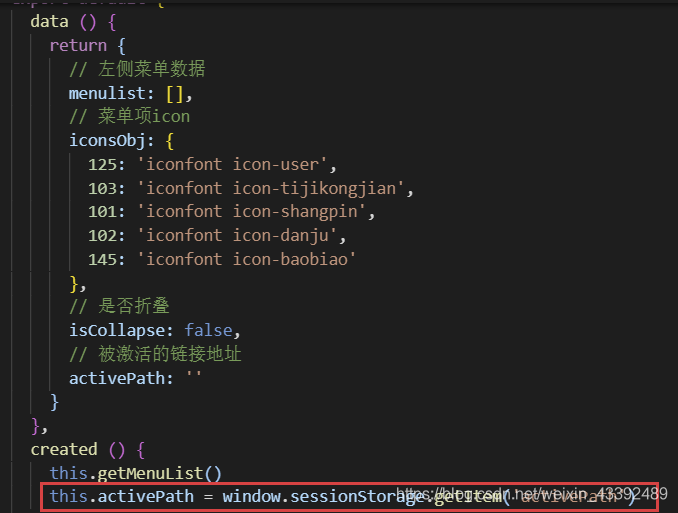 然后在我们创建这个组件时,就获取当前的激活状态的路径即可。
