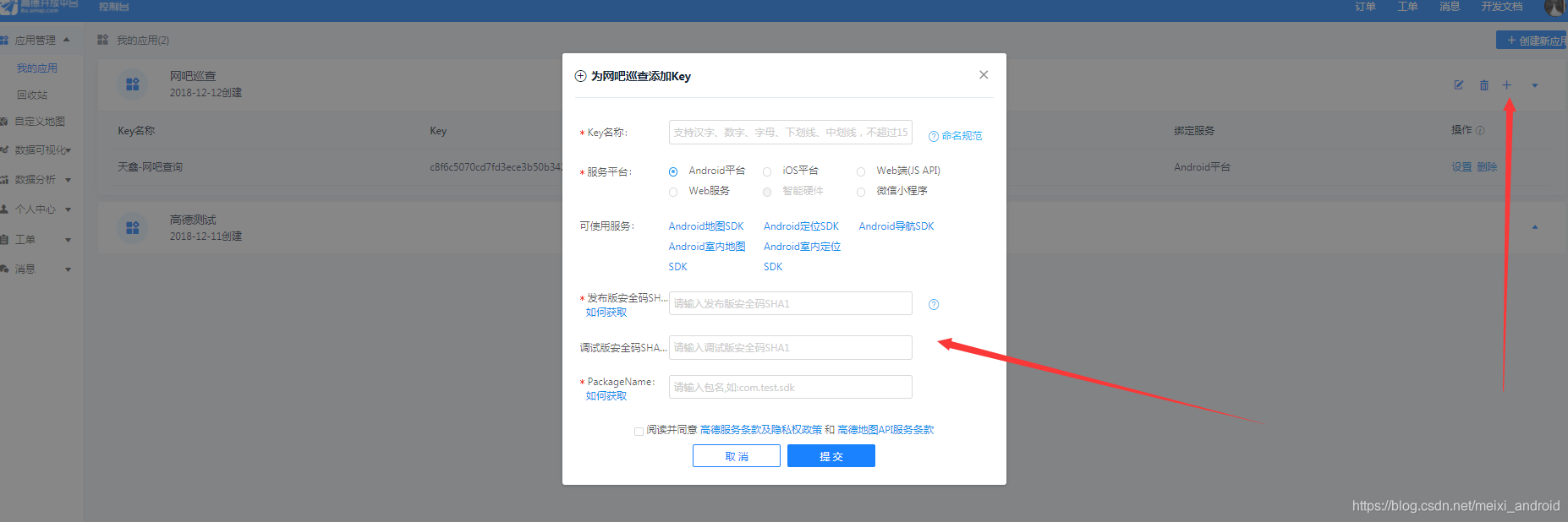 1、到高德开放平台申请,获取key