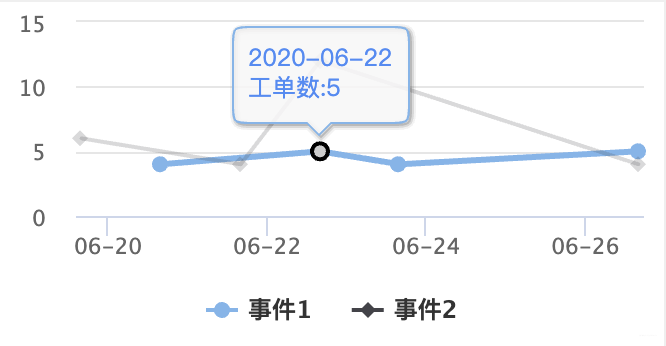 [{"name":"事件1","data":[{"x":1592582400000,"y":4},{"x":1592668800000,"y":4},{"x":1592928000000,"y":4},{"x":1593187200000,"y":5}]},{"name":"事件2","data":[{"x":1592582400000,"y":6},{"x":1592755200000,"y":4},{"x":1592841600000,"y":12},{"x":1593187200000,"y":4}]}]