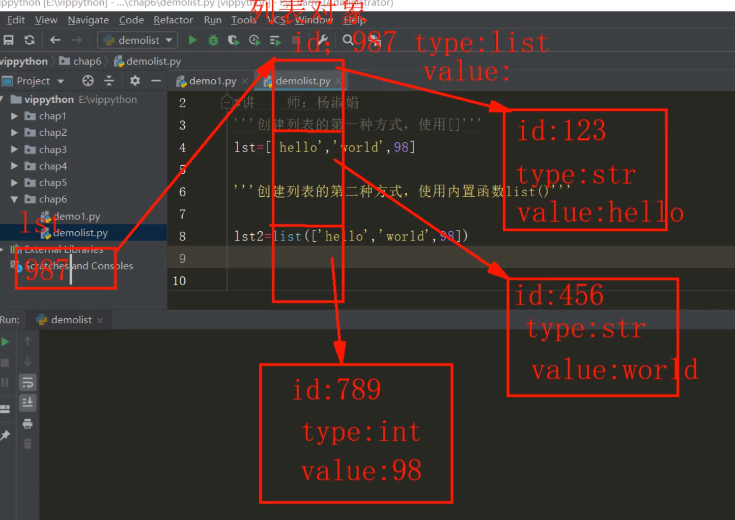 print(lst,id(lst)) #可以看出地址并没有变化lst1 = ['新的列表','即将插入']
