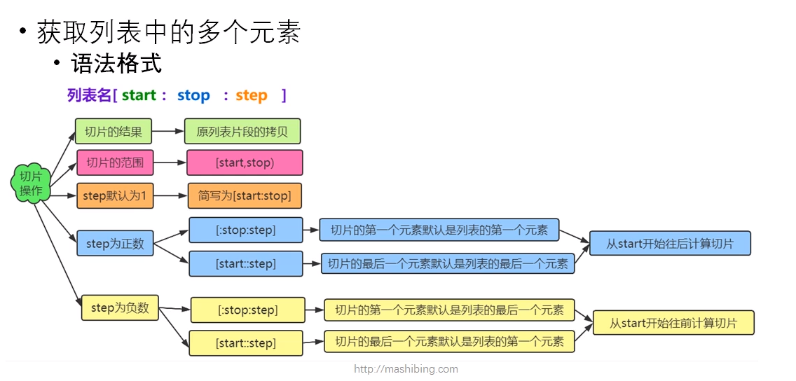 切片结果!!!相当于返回的是原列表的部分元素组成的新列表