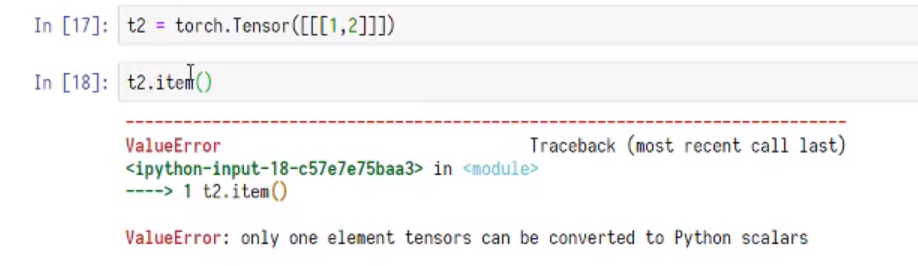 (1) t1.item()只能用于张量中只有一个数据的情况下获取张量内的值