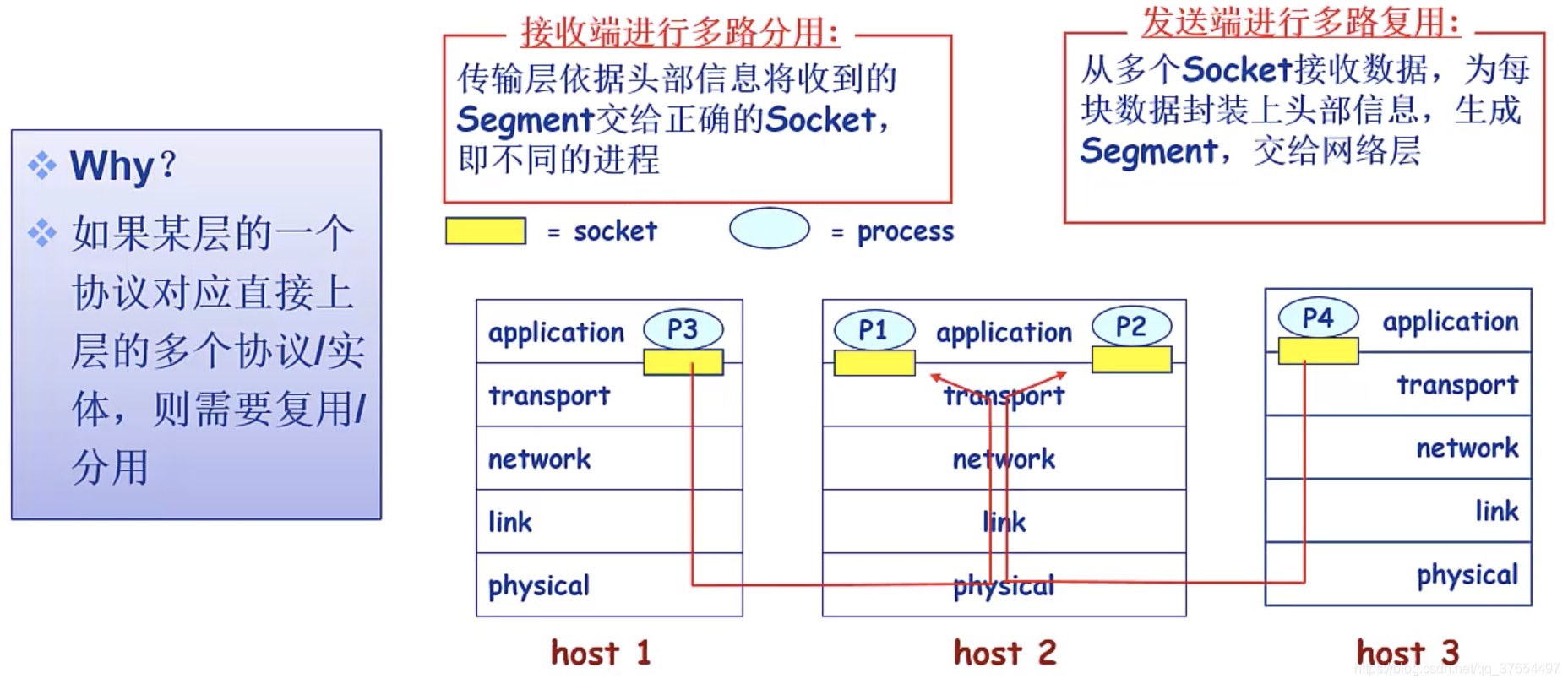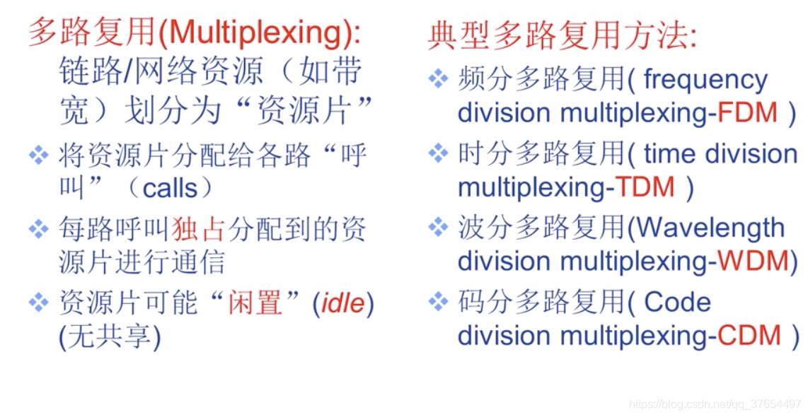 多路复用:一路物理链路的通信能力、网络资源远远大于一路通信所需要的资源,所以要多路复用。