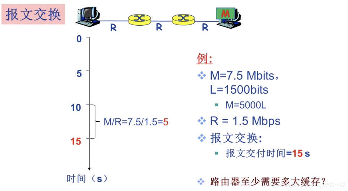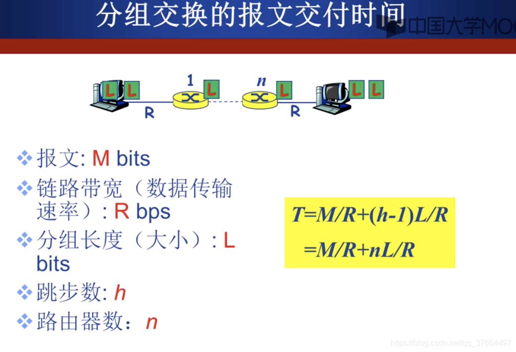 上述公式可解释为:整个报文的传输延迟时间 + 最后一个分组在各个路由器转发时的延迟时间