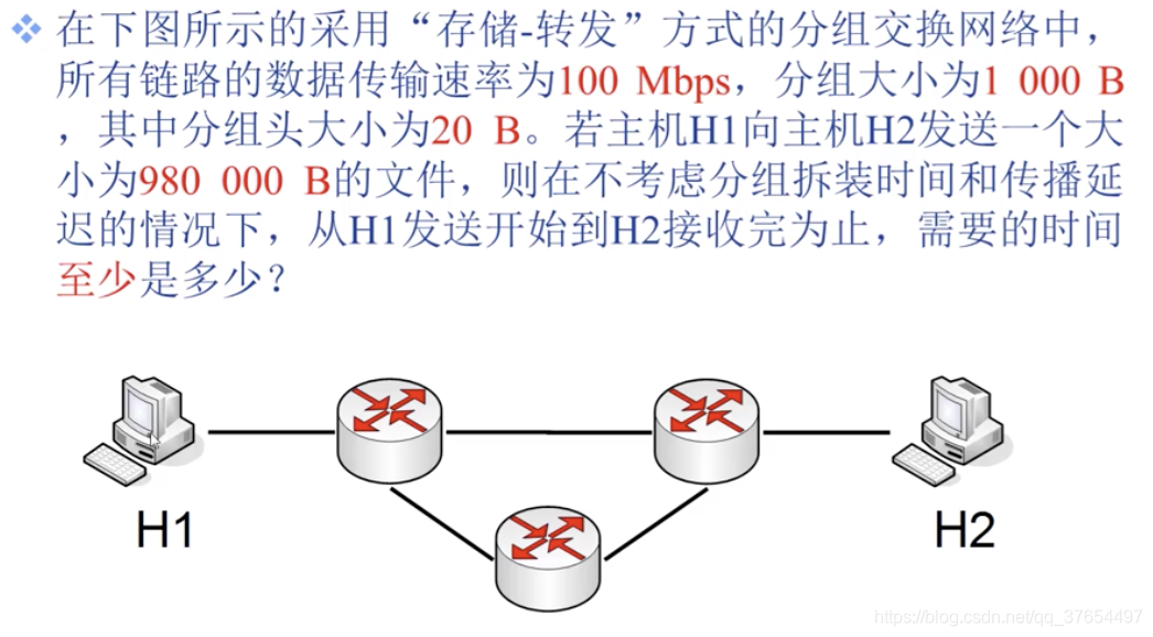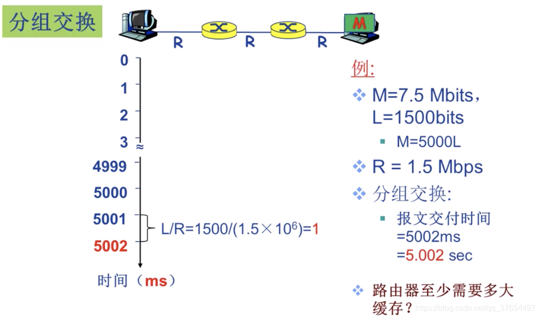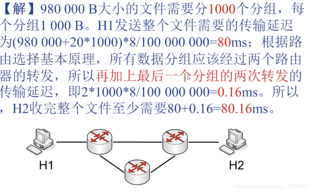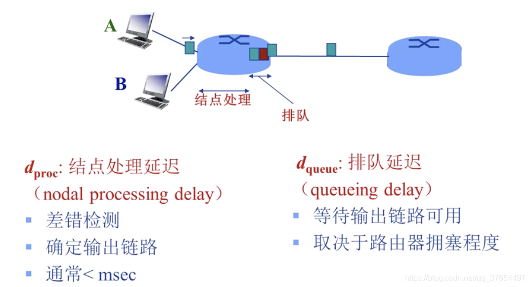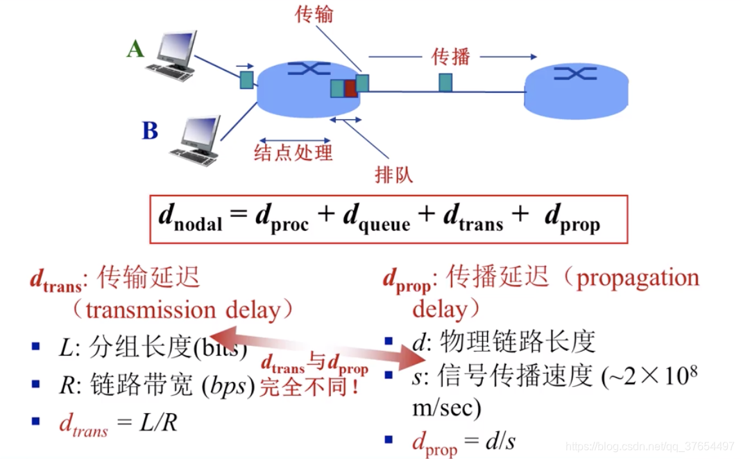 四种分组延迟:(一跳的时间延迟,求源到目的的延迟累加即可