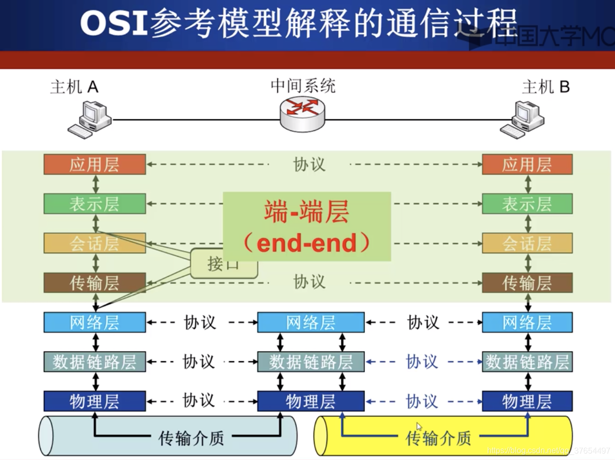 实线表示数据真正的流动方向,虚线表示在当前层看来数据的流动过程。协议是水平的,数据传输是纵向的。