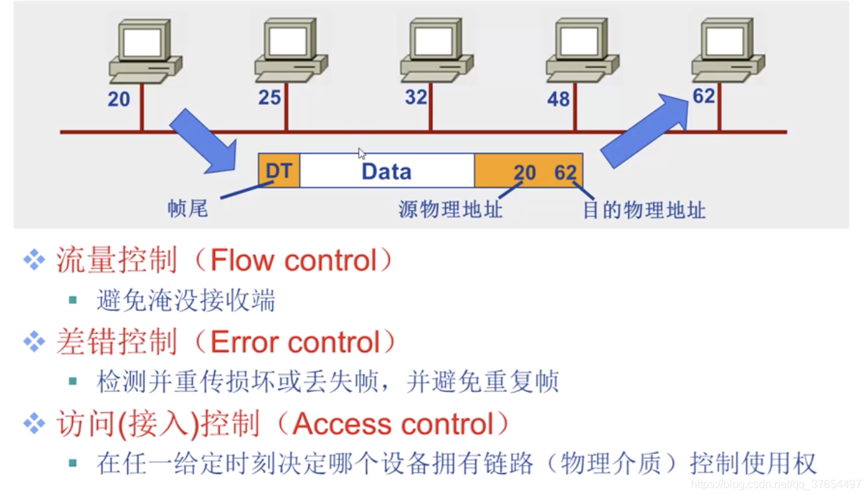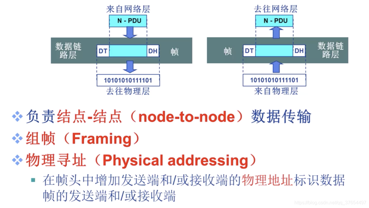 2)数据链路层功能:以帧为单位在物理链路直接相连的两个相邻节点间传输