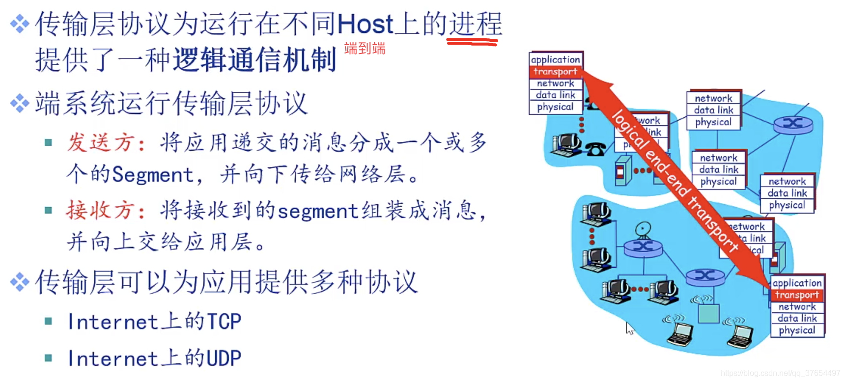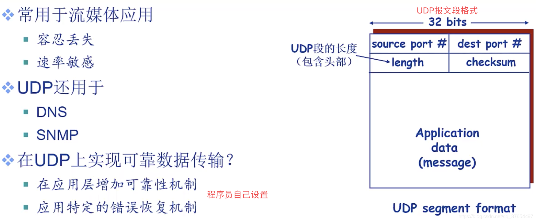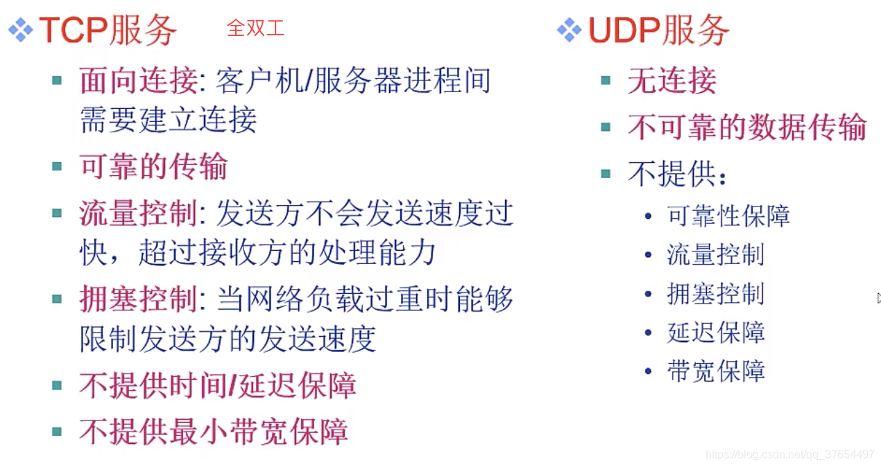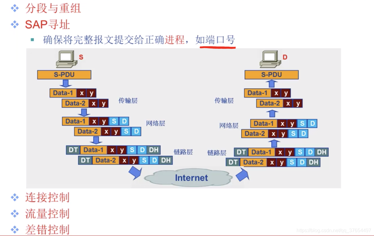 定义传输数据的协议端口号,以及流量控制和处理传输差错(如在指定的时间内未收到确认信息,数据将被重发)。
