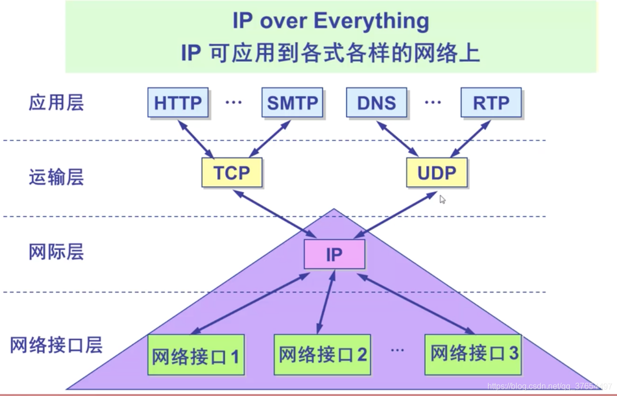 网络接口层没有定义具体的协议,只需能封装IP分组,能将IP分组传输到目的节点即可。