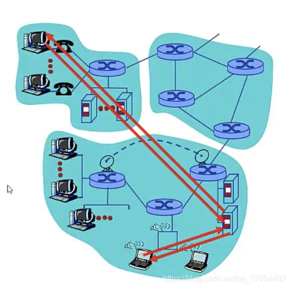 c.网络核心:互联的路由器(或分组转发设备) 网络之网络