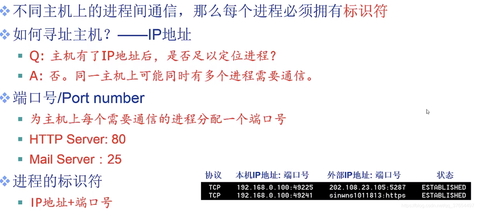 对应主机进程,指本地主机与远程主机正在进行的会话