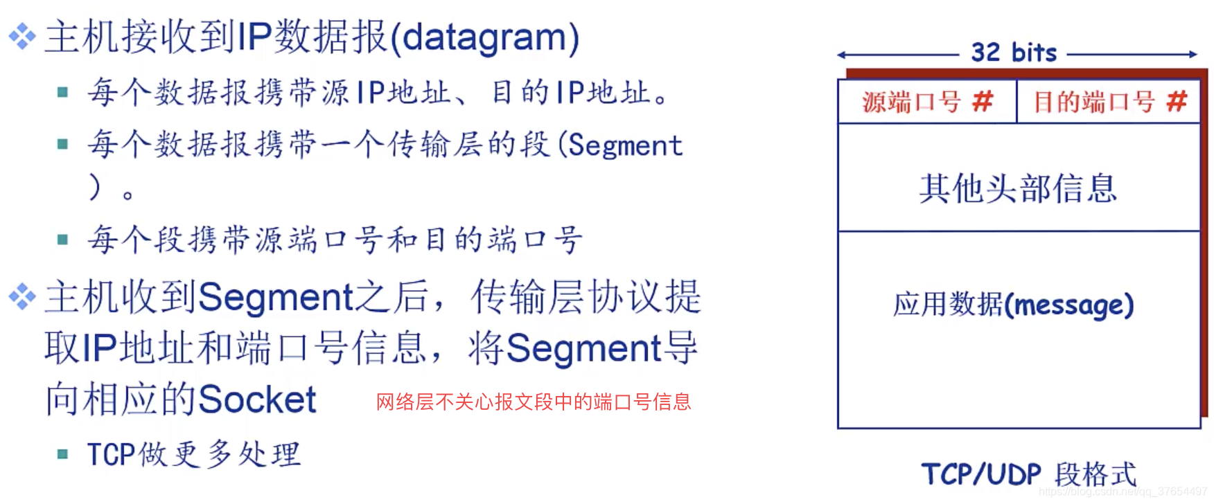 4)传输层功能:解决进程与进程之间的通信 段