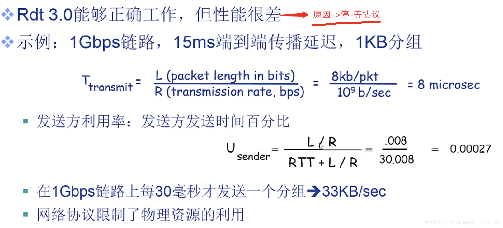 Lmin/R = RTTmax; (L/R >= 2d/v) d:距离;v:速度;R带宽;L数据帧长度。