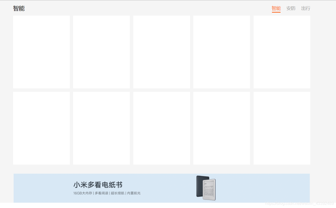 </head><body><section class="section-goods"><main class="main-good-list"><!--商品头部--><header class="clearFix"><div class="title-left">智能</div><ul class="title-right"><li class="selected">智能</li><li>安防</li><li>出行</li></ul></header><!--商品列表--><ul class="good-list clearFix"><li></li><li></li><li></li><li></li><li class="margin-off"></li><li></li><li></li><li></li><li></li><li class="margin-off"></li></ul><a class="book" href="#"></a></main></section>