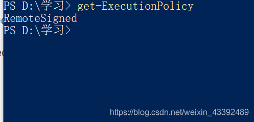 (4)在终端执行:get-ExecutionPolicy,显示RemoteSigned