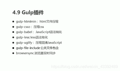 gulp.task('htmlmin', () => {gulp.src('./src/*.html')//压缩去其中的代码.pipe(htmlmin({ collapseWhitespace: true })).pipe(gulp.dest('dist'));
