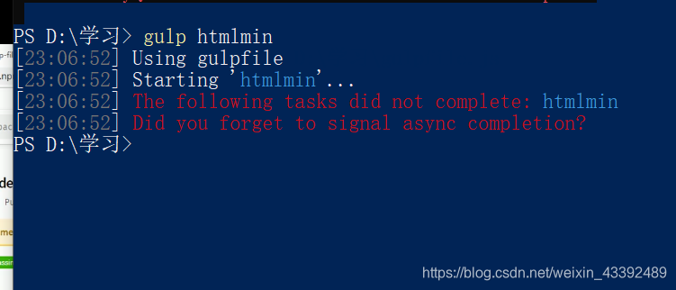 const htmlmin = require('gulp-htmlmin');gulp.task('first', () => {console.log('第一次执行');});