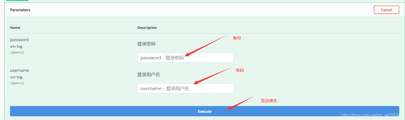 public class User {@ApiModelProperty("用户名")public String username;@ApiModelProperty("密码")public String password;public User() {}public User(String username, String password) {this.username = username;this.password = password;}