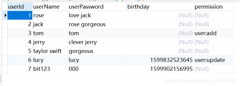 public class UserRealm extends AuthorizingRealm {@Autowiredprivate UsersMapper usersMapper;// 授权@Overrideprotected AuthorizationInfo doGetAuthorizationInfo(PrincipalCollection principalCollection) {System.out.println("授权认证=> PrincipalCollection");SimpleAuthorizationInfo authorizationInfo = new SimpleAuthorizationInfo();// 对user:add授权// authorizationInfo.addStringPermission("user:add");// 获取当前用户Subject subject = SecurityUtils.getSubject();Users users = (Users) subject.getPrincipal();// 进行身份认证 设置当前用户的权限authorizationInfo.addStringPermission(users.getPermission());return authorizationInfo;}// 认证@Overrideprotected AuthenticationInfo doGetAuthenticationInfo(AuthenticationToken authenticationToken) throws AuthenticationException {System.out.println("登录认证=> AuthenticationToken");// 用户名 密码认证UsernamePasswordToken userToken = (UsernamePasswordToken) authenticationToken;// 页面用户名String tokenUsername = userToken.getUsername();// 数据库中是否存在该用户Users users = usersMapper.findUsersByUsersName(tokenUsername);if (users == null) {return null;}SecurityUtils.getSubject().getSession().setAttribute("loginUser", users);// principal 用户认证 用户里面存在权限return new SimpleAuthenticationInfo(users, users.getUserPassword(), ""); // 密码自动验证}