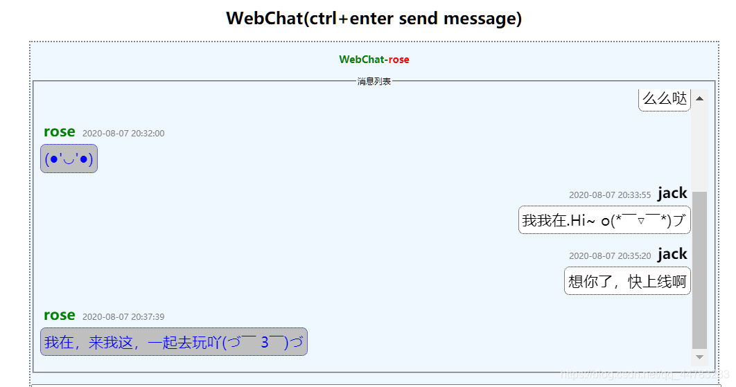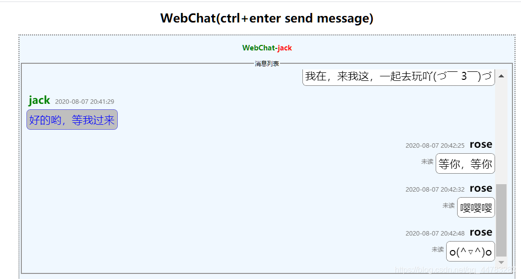 服务器再用websocket发送消息到rose,把未读消息不做展示上面分析了rose不在线的情况下,当两人同时在线的情况
