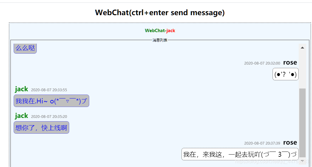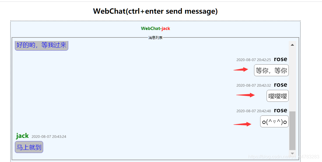 4. jack发送消息到服务器,服务器保存消息,在把消息转发到rose
