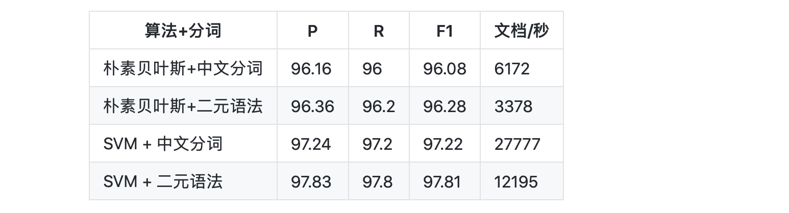 中文文本分类的确不需要分词,不分词直接用元语法反而能够取得更高的准确率。只不过由于二元语法数量比单词多,导致参与运算的特征更多,相应的分类速度减半。