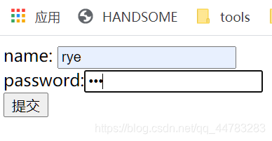 <form action="judgeLoginSession" method="post">name: <input type="text" name="name" /> <br/>password:<input type="password" name="pwd" /> <br/><input type="submit" value="提交"/></form>