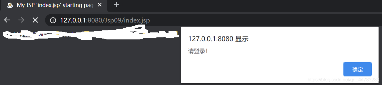<html><head><base href="<%=basePath%>"><title>My JSP 'index.jsp' starting page</title><meta http-equiv="pragma" content="no-cache"><meta http-equiv="cache-control" content="no-cache"><meta http-equiv="expires" content="0"> <meta http-equiv="keywords" content="keyword1,keyword2,keyword3"><meta http-equiv="description" content="This is my page"><script type="text/javascript">window.onload = function() {if (${empty name}) {alert("请登录!");location.href = "login.jsp";}};</script></head><body> 欢迎${ name },登录成功!</body>